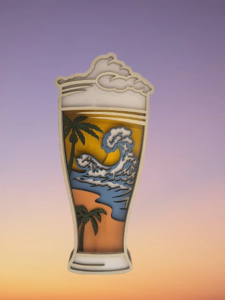 The beer glass silhouette design makes an immediate visual impact while the tropical scene within tells a story of relaxation, good times, and island vibes. The layered construction technique creates shadows and depth that shift beautifully with ambient lighting.