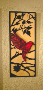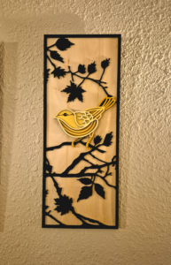 Every Bird Trio set is lovingly handcrafted by The Mad Crafter LLC. The layered wood construction creates beautiful depth and dimension, with each bird and botanical element carefully cut, assembled, and painted by hand. The natural wood grain provides a warm backdrop that makes each painted bird pop with vibrant color.