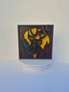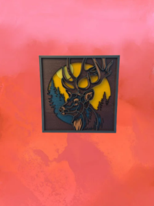 Features: Each of the six layers is meticulously laser-cut to create a stunning three-dimensional wilderness scene. The layered construction builds from the glowing golden sunset in the background through forest silhouettes to the magnificent stag in the foreground, complete with intricate antler details and forest texturing that creates remarkable depth.