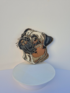 Celebrate your love for man’s best friend with this charming pug portrait! This heartwarming 7″ x 8″ piece captures all the personality and charm of everyone’s favorite wrinkly companion through expertly crafted multi-layered wooden artistry.